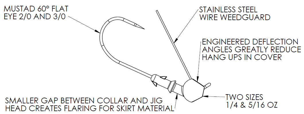 5/16 oz with Mustad 60° Flat eye 3/0 hook